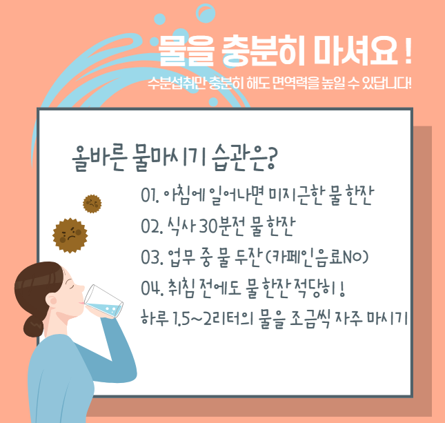 면역 세포가 제대로 활동하려면 충분한 수분이 필요해요.