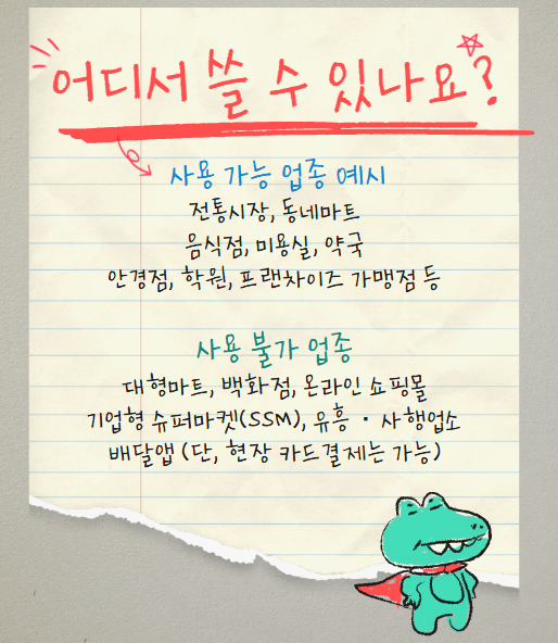 소상공인 매장에서만 사용할 수 있는 방식으로 설계되어 지역경제와 골목상권에 실질적인 도움을 주기 위해 도입된 정책이에요.